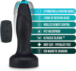 This remote-controlled plug offers a combination of sensations and longer-lasting pleasure. The Ultrasilk Silicone with its silky-smooth feel warms with your body heat beautifully. This easy-to-clean IPX7 waterproof magnetic charging rimming anal plug comes with a 4-way wireless remote allowing you to choose between 10 modes of gyrating rotating of the 5 rows of rotating pleasure beads and powerful vibrations that stimulate during use. The plug has a 5.75 inch length (4 inch insertable) and a 1.5 inch width. Made with satin smooth body-safe silicone this plug contains no fragrances phthalates paraffins or latex. 10 Functions Of Gyrating. Rotating 5 Rows Of Beads For Rimming. Powerful Vibrations. Tested IPX7 Submersible Waterproof Made From Ultrasilk Silicone. Body Safe. Phthalate Free. USB Magnetic Charging. 4-Way Wireless Remote Control. Measures 5.75 Length (4 Insertable) x 1.5 Width