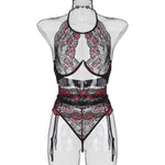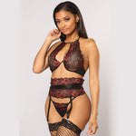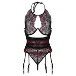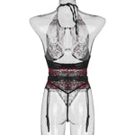 Exotic Set Women Sexy Embroidery Flowers Plus Size Underwire Hollow Bra Panty Garter Seamless Halter Lingerie Briefs G-String