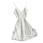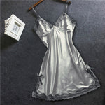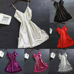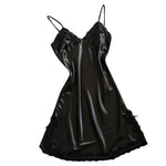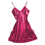 Women Satin Sexy Bowknot Lace Lingerie Babydoll V-neck Sleepdress Underwear