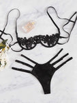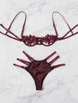 Women Sexy Lingerie Lace Satin Hollow out Floral Sheer Lace Tops Bra Thong Underwear Set Erotic Sex Costume