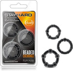 Perform like the stud you are! These Stay Hard Beaded C Rings come in 3 sizes 1.35 1.5 1.7 inches so you can use them individually or all 3 at once. The Small Ring is for maximum erections; Medium Ring is for hard erections; Large Ring can be used to encircle the upper part of your scrotum to help prevent premature ejaculation. They are made of body safe TPE a super stretchy comfortable and Phthalate Free material developed specifically for your safety and hygiene during your intimate play. So if you're looking for a safe way to increase both in size and stamina you and your partner are sure to enjoy Blush's Stay Hard Beaded C Ring and your bigger better erection that lasts even longer! Wash with soap and water between uses. Air dry. Stores best in the original packaging. Three Sizes: 1.25 Inches 1.3 Inches 1.5 Inches Soft And Stretchy Increase Stamina & Enjoy Harder Erections Strong Tear Resistant Elastomer Made from TPE. Contains no Fragrances Phthalates Paraffins or Latex.
