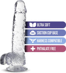 Blush Naturally Yours 6" Diamond Slim Dildo w/Balls, 1" Wide Realistic Transparent Cock - Suction Cup, Strap-On Compatible - Beginner Anal & Vaginal - Adult Sex Toy for Women, Men & Couples - (Clear)