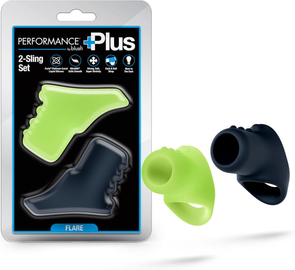 Blush Performance Plus Flare 2 Cocksling Set, Glow in The Dark Silicone Unique Cock & Balls Ring, Platinum-Cured Ultrasilk Super Stretchy Penis Slings, Stamina & Erection Enhancer, Men's Adult Sex Toy