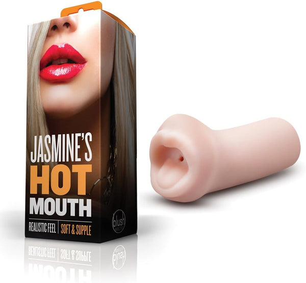 Blush X5 Men Jasmine's Hot Mouth 5.25" Masturbator - Realistic Deep Throat Pocket Stroker - Silicone Soft Oral Blowjob Sleeve, Textured Ribbed, Open-Ended, Body-Safe Adult Sex Toys for Men - (Beige)