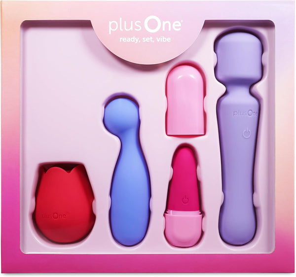 plusOne Ready, Set, Vibe 5pc Sex Toy Gift Set, Versatile External and Internal Stimulation, Holiday and Bachelorette Gifts for Bride, Waterproof Intimacy Bundle