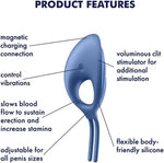 Satisfyer Swordsman Vibrating Cock Ring - Size Adjustable Penis Ring with Clitoral Stimulator for Longer, Stronger Erections, Erection Enhancing, Vibration - Waterproof, Rechargeable (Blue)